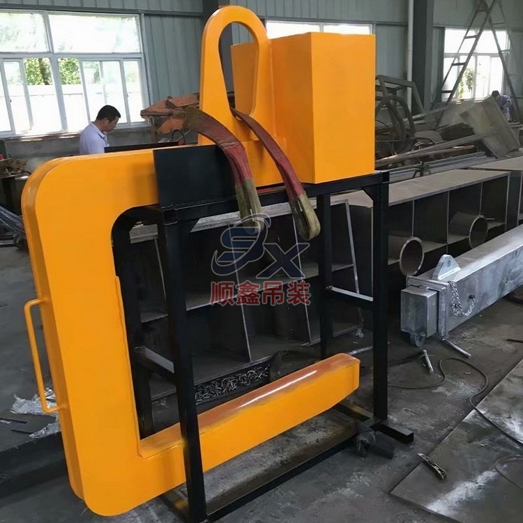 翻轉(zhuǎn)吊具通過機(jī)械剪力原理,對(duì)立式擺放的卷鋼進(jìn)行單邊抓取,來完成卷鋼的裝卸,當(dāng)改變重力點(diǎn)時(shí),可以對(duì)卷鋼進(jìn)行翻轉(zhuǎn),作業(yè)時(shí)不傷鋼卷。其吊耳采用加厚處理,焊縫飽滿牢固、延長(zhǎng)使用壽命。